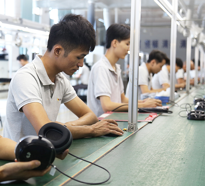 现有组装流水线2条现代化的生产线(可随时扩成4条),对太阳能控制器,逆变器,储能、工业降噪耳机、等工业产品组装经验丰富 ;能够生产绝大部分的数码电子产品,极强的综合生产能力,日产能达到1万PCS以上。防静电PVC空调车间,配备有老化房,测试房,成品测试隔音隔离房等,设备先进、完善,可进行各种产品镭雕、组装、老化、测试、包装等生产。
