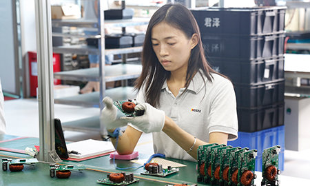 现有组装流水线2条现代化的生产线(可随时扩成4条),对太阳能控制器,逆变器,储能、工业降噪耳机、等工业产品组装经验丰富 ;能够生产绝大部分的数码电子产品,极强的综合生产能力,日产能达到1万PCS以上。防静电PVC空调车间,配备有老化房,测试房,成品测试隔音隔离房等,设备先进、完善,可进行各种产品镭雕、组装、老化、测试、包装等生产。